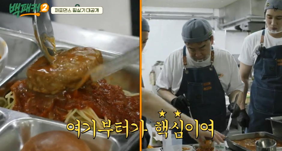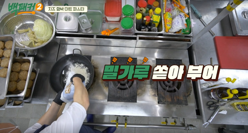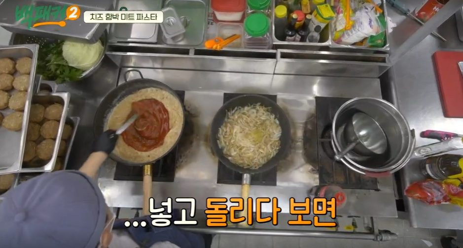 tvn 백패커2 2회 치즈 함박 미트 파스타 만들기 레시피 보기