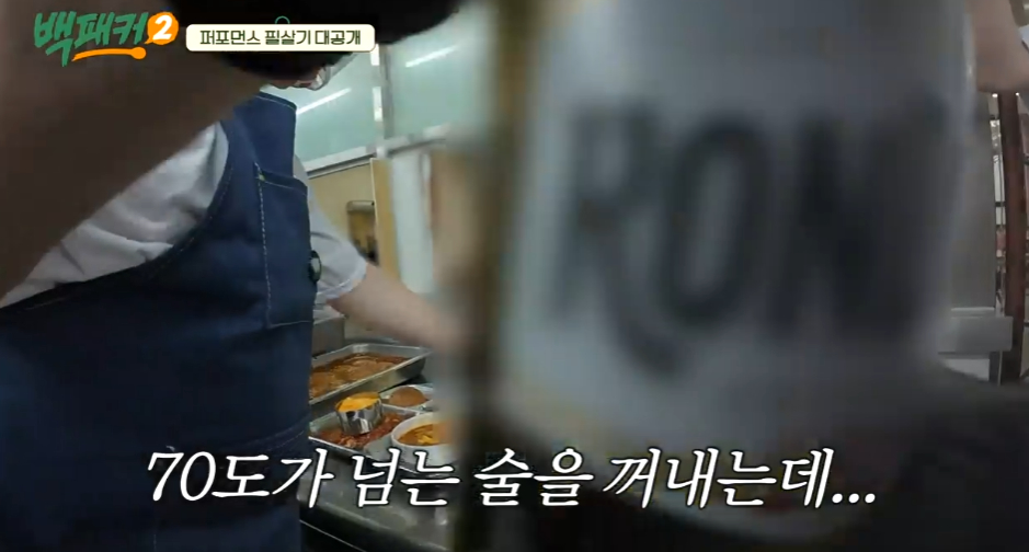 70도가 넘는 술을 무스링에 살짝 부어요.